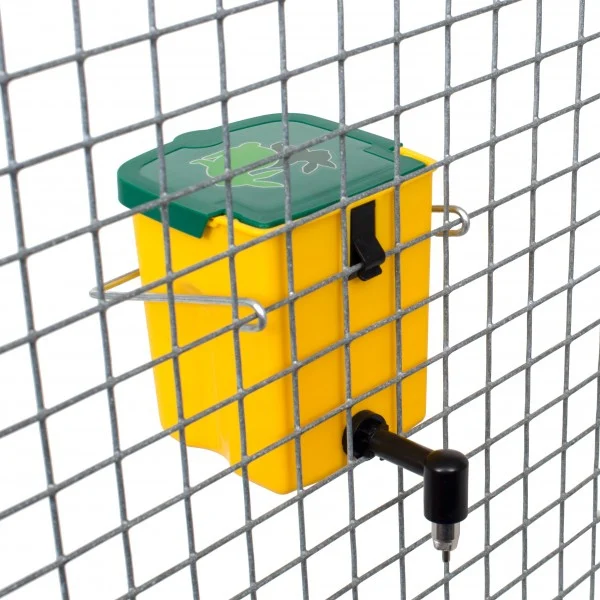 Adăpătoarea de iepuri cu recipient de 0,5L,galben, este un dispozitiv rezistent şi de durată, duza de adăpare fiind făcută din metal, astfel iepurele nu o poate distruge.