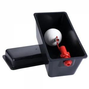 Rezervorul cu plutitor pentru adăpători se poate conecta direct la  rețeaua de apă. De asemenea prin înlăturarea capacului cu care este prevăzut se poate introduce în apa de băut vitamine sau medicamente.
